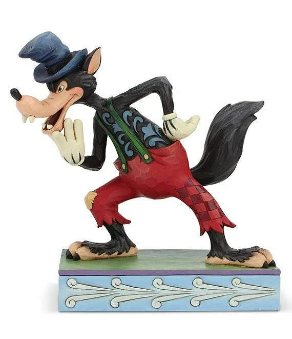 The Big Bad Wolf scratches his chin contemplating which little pigs house he should blow down first. Looking quite strapping in his suspenders and hat with Jim Shore rosemaling design, this big bad wolf will be huffing and puffing soon enough. Approx. 6.2″H x 2.7″W x 6.2″L