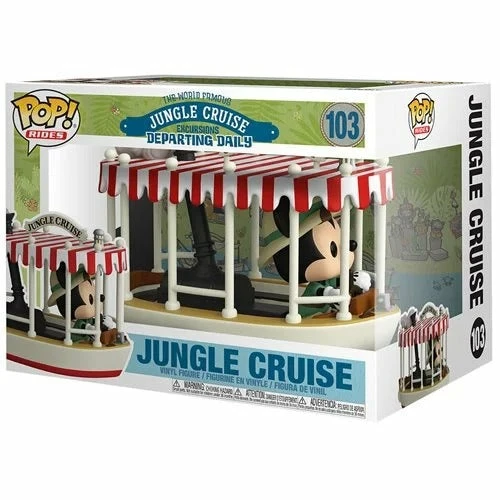 Set sail for a wild adventure! The jungle can be a dangerous place, but you’re sure to have a few laughs with Mickey at the helm! This Jungle Cruise Skipper Mickey with Boat Pop! Vinyl Vehicle comes package in a window display box.