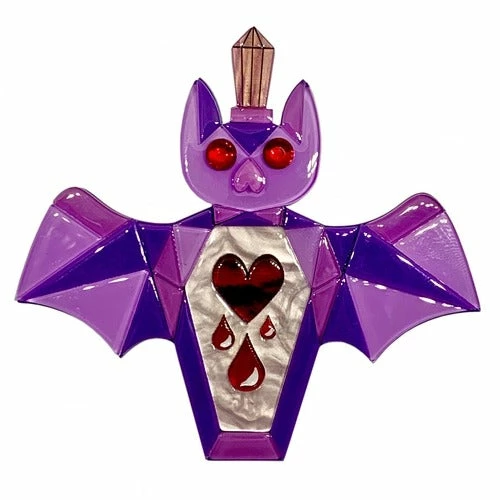 This bat bottle brooch will satisfy all your cocktail recipes – “All That Bitters” has 40 pieces which give the bottle a fancy cut crystal look! Oh, and those rhinestone eyes – yah, it might be our favorite in the bunch! Another oversized piece (bigger is better) this one measures almost 3.5″