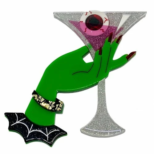 Eye’ll Have Another features a sparkly cocktail with eyeball garnish… obviously! 3.5″ tall – this one is a Halloween statement piece.