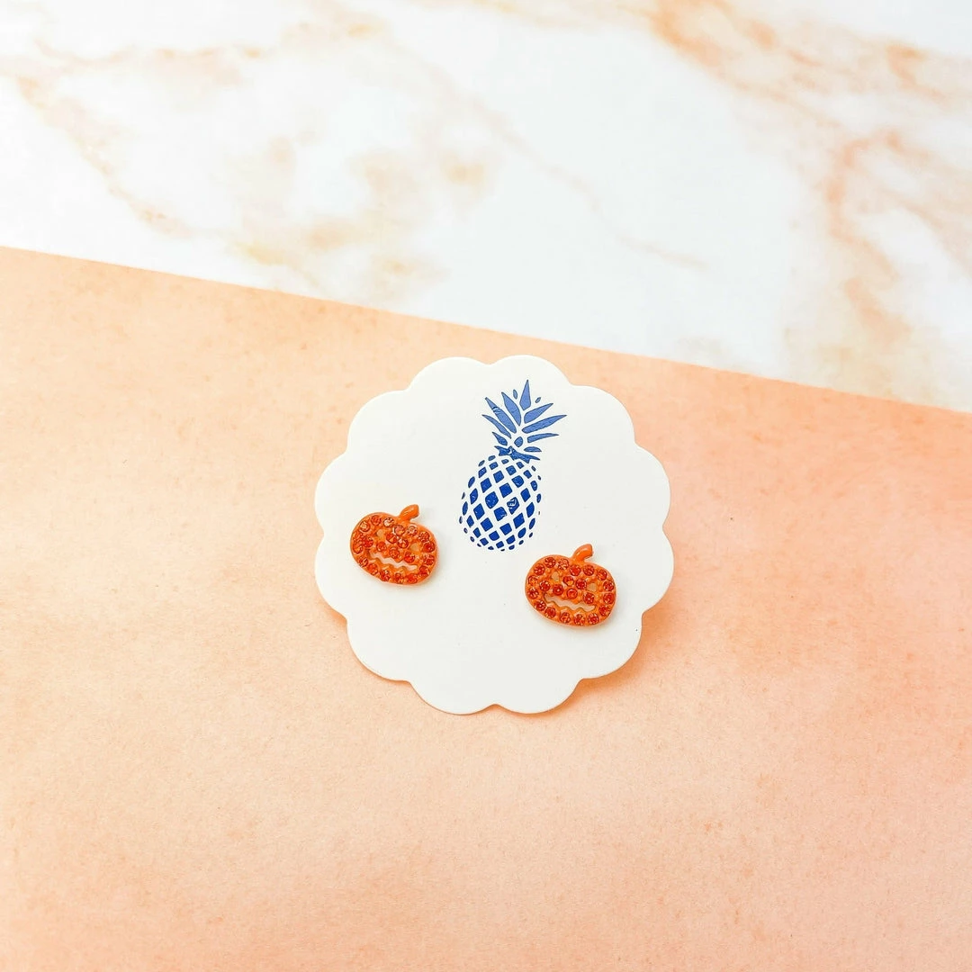 Faire Rhinestone Jack-O-Lantern Stud Earrings Home