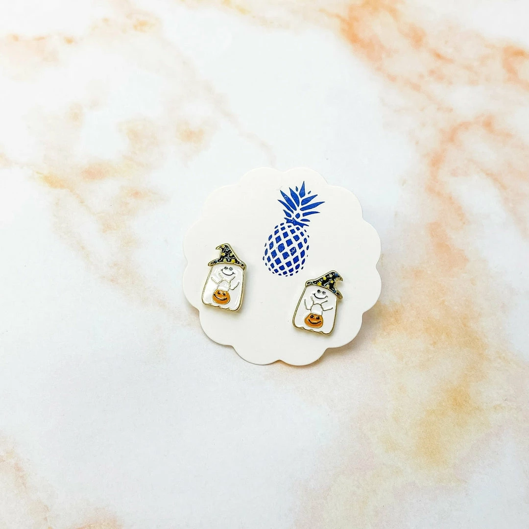 These 1/2″ Trick-or-Treater Ghost Enamel Stud Earrings would go perfect with so many outfits!