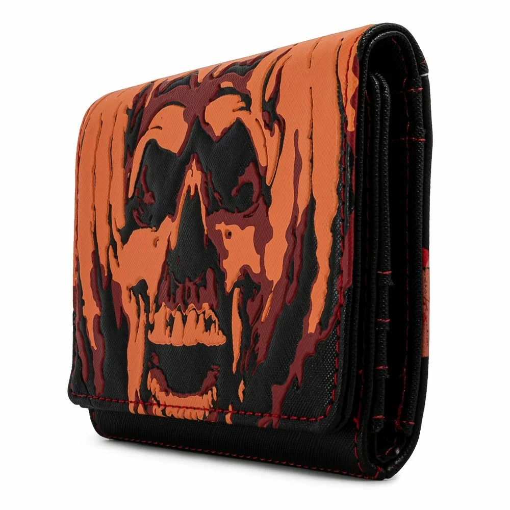 Michael Myers is on the move again! The Loungefly Halloween II Michael Myers Pumpkin Tri-Fold Wallet makes him more mobile than ever. The front features the iconic carved pumpkin from the movie and on the back you’ll see Michael Myers walking the streets under a red sky. It’s a scary sight making it a perfect Halloween accessory.