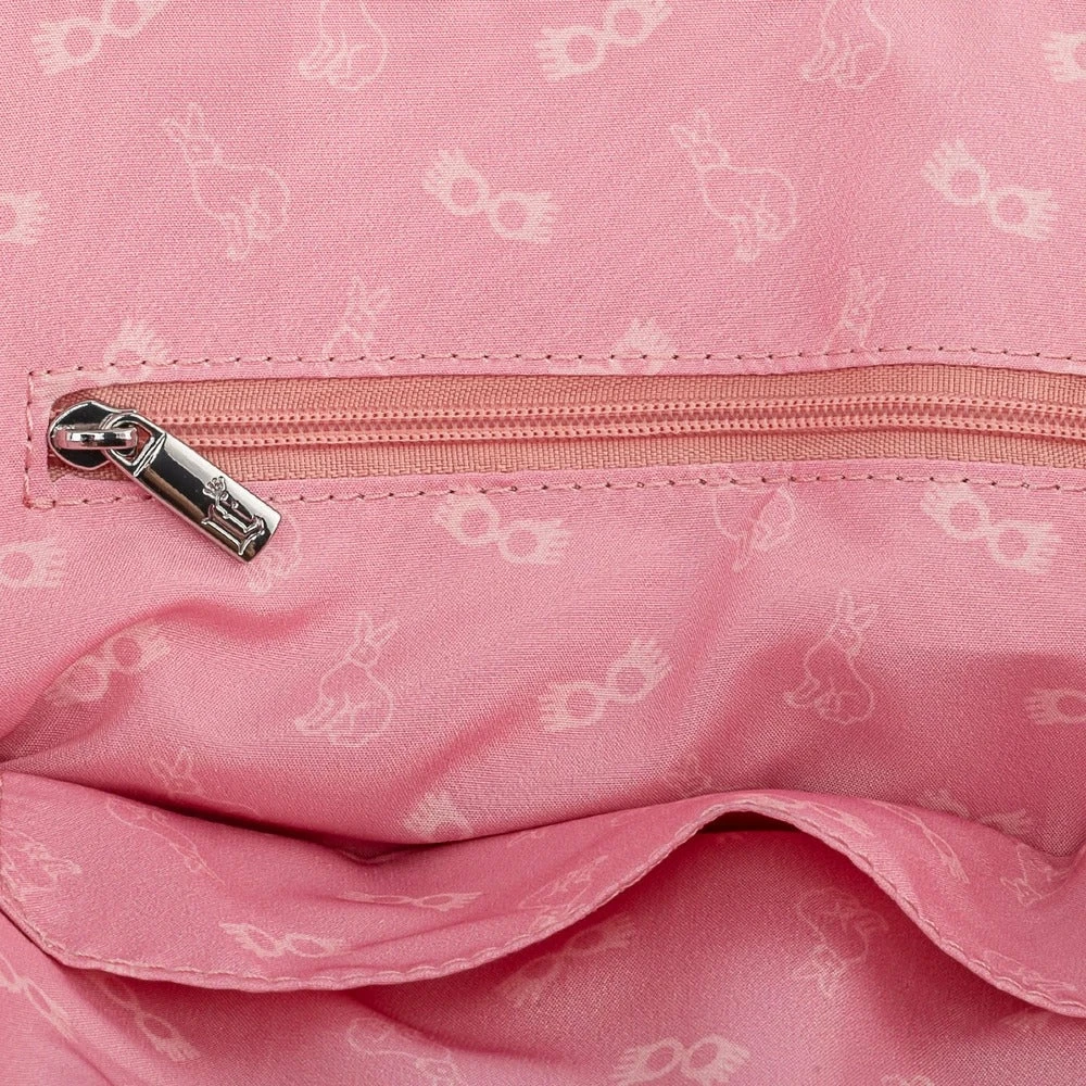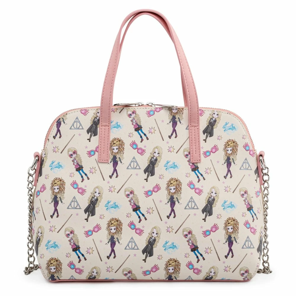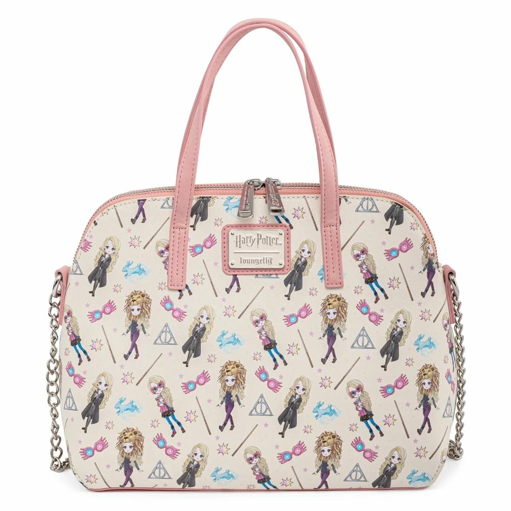 Luna tends to get teased for her eccentric accessories, but her style is carefully coordinated. Celebrate the cute and unconventional with Loungefly’s Harry Potter Luna Lovegood Crossbody Bag. Within the all-over-print Luna is wearing her Hogwarts robes, her lion head hat, and spectrespecs-inspired outfit. Also scattered around the pattern is Luna’s wand, patronus (hare), spectrespecs, stars, and the Deathly Hallows symbol. Stand out from the crowd with the Luna Lovegood AOP Crossbody.