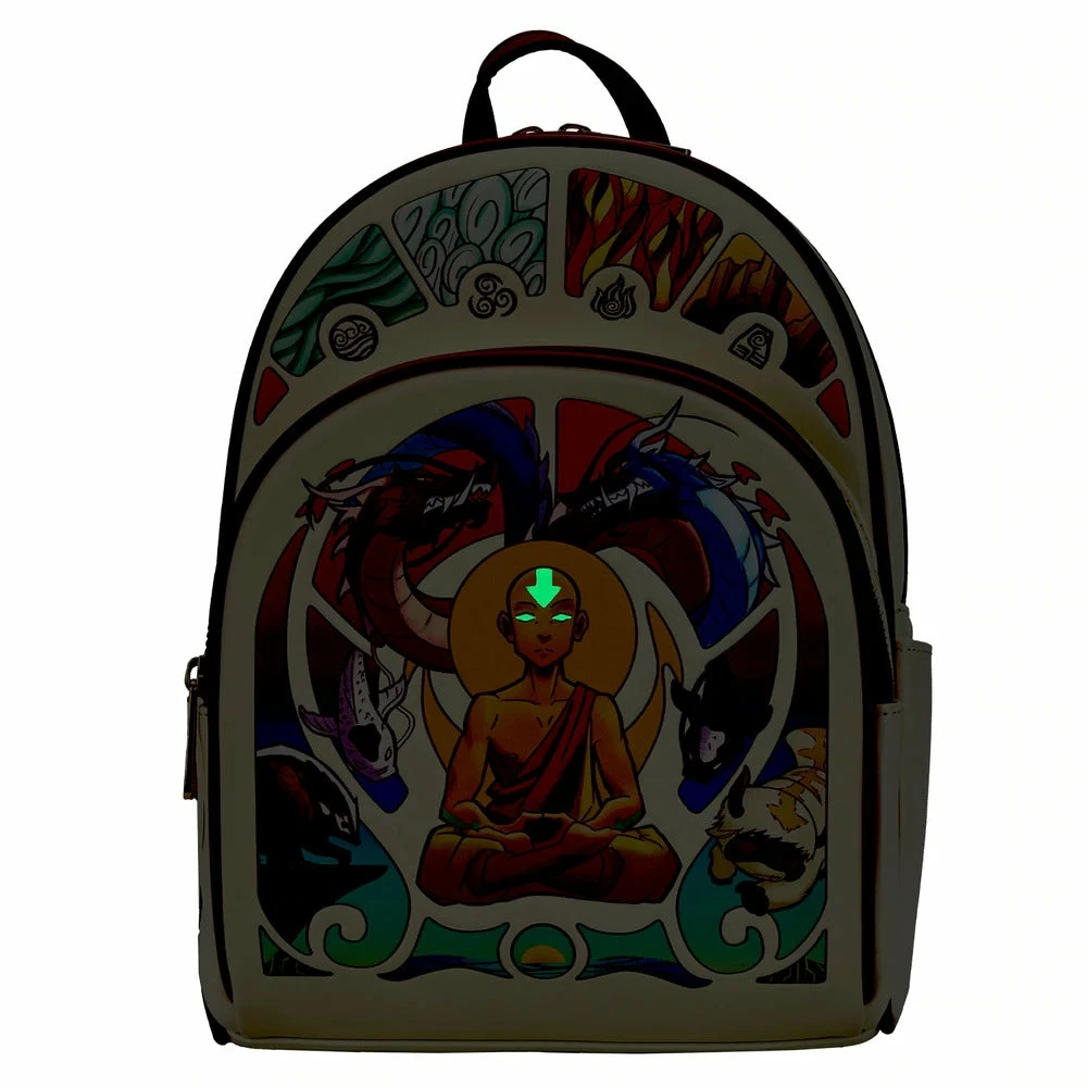 Flow through the day in style and keep your possessions safe with this Avatar Aang Glow in the Dark Backpack. On the front zipped compartment of this backpack, Aang meditates, opening the chakras and letting the energy flow. His arrow and eyes glow in the dark. The four elements icon are embroidered on the back.