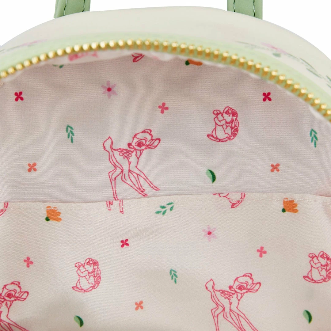 Faux leather decorative bow drawstring, embroidered, and printed details.